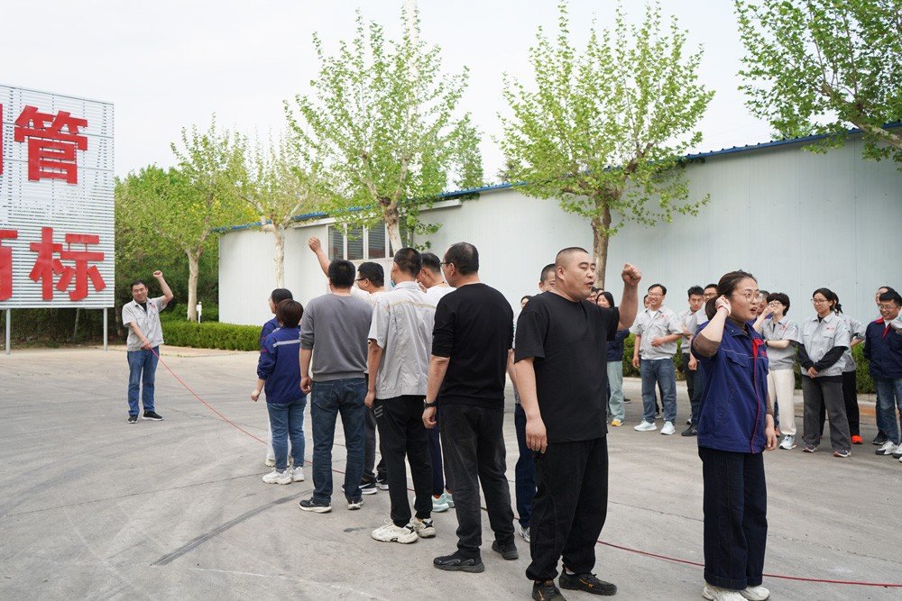 本次跳繩比賽共五支隊伍,分別是南樓辦公室、北樓辦公室、智能生產(chǎn)部、直管生產(chǎn)部、盤管生產(chǎn)部。戰(zhàn)前宣誓環(huán)節(jié),各隊隊長振臂高呼,隊員們聲浪如潮,整個賽場沸騰著宏泰人永不言敗的熱血!