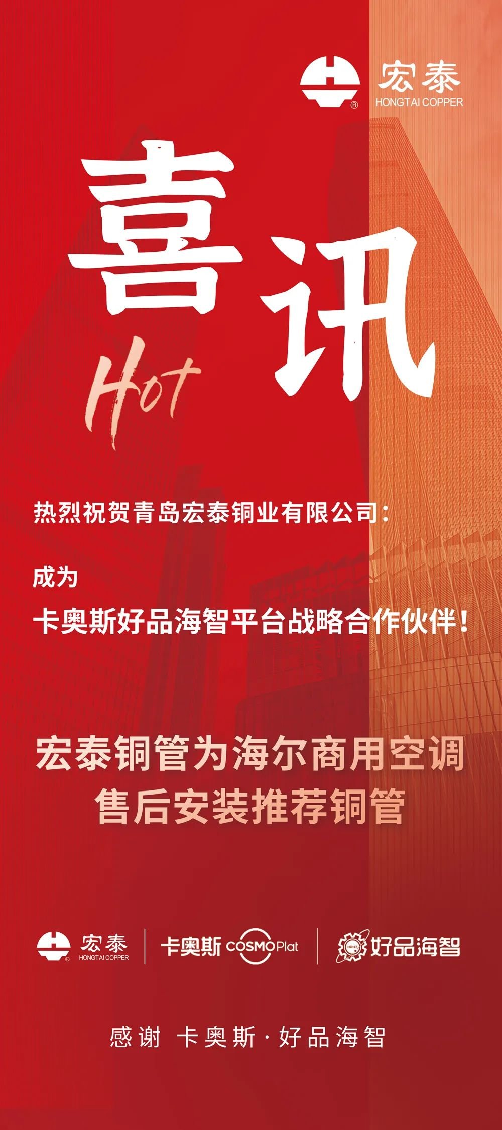 與卡奧斯好品海智平臺(tái)達(dá)成合作關(guān)系,離不開宏泰銅管一直以來秉持“質(zhì)量第一、服務(wù)至上”的經(jīng)營理念,全面貫徹ISO9001:2015質(zhì)量管理體系,建立了嚴(yán)格的質(zhì)量監(jiān)控制度和售后服務(wù)保障機(jī)制。宏泰紫銅管產(chǎn)品遠(yuǎn)銷歐美、東南亞、中東、澳大利亞等國家和地區(qū),深受客戶的贊譽(yù)和信賴。