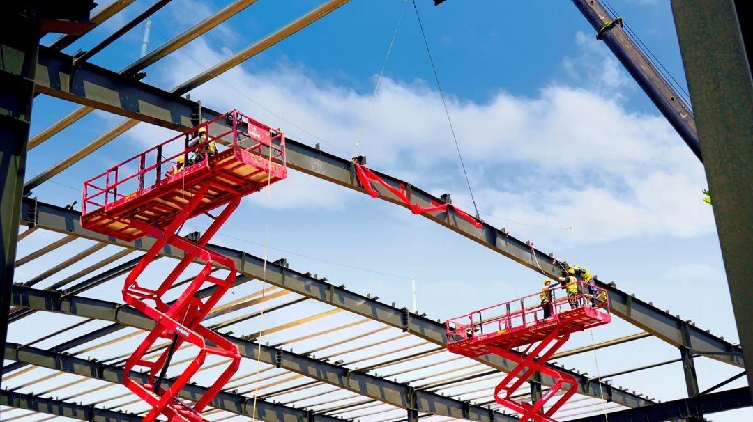 隨后,激動人心的一刻伴隨著禮炮齊鳴而到來,起重機平穩(wěn)地起吊大梁,在現(xiàn)場一聲聲“上梁大吉”的如雷歡呼之中,宏泰新建3#車間順利完成上梁!
